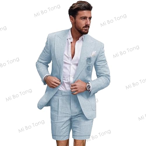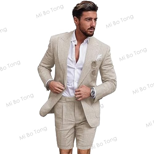 Mi Bo Tong Men Linen Suit 2 PCS One Button Suits Casual Formal Summer Suit for Wedding Blazer Pants Tuxedos