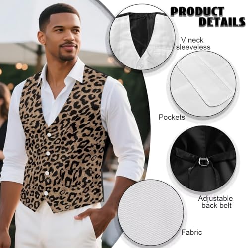 • Features: Men's dress vest, 2 pockets, v neck, 4-button, sleeveless, slim fit, suit vest with back adjustable belt. The business suit vest features a elementary design that allows you to stay relaxed and pleasant and look striking and handsome