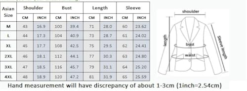 Fabric type: 100% PolyesterCare instructions: Machine WashSize And Washing: Men'S Casual Suit Jacket, Asian Size, Wide Size, But Please Refer To The Size Chart On The Left Side Of The Picture Carefully Before Ordering. Hand Wash Or Dry Cleaning Is Recommended. Low Temperature Ironing When NecessaryMaterial: The Fabric Is Soft, Some Styles Are Polyester, And There Are Also Polyester And Viscose, Wool And Other Blended Materials. Skin-Friendly And Comfortable, Medium Weight, Can Be Worn In All Seasons. Not Easy To FadeStyle: Mostly latest Design, Suit Collar, Single Row One Button, Two Button Zipper Opening And Closing Style. With Practical Pockets, Convenient For Placing Small Items. Mostly Solid Colors, To Meet Your Daily Matching NeedsMatching: The Inner Wear Can Be Matched With A Shirt, Casual T-Shirt, Straight Trousers, Or Jeans To Add A Fashionable And Casual Feel. It Can Also Be Matched With A Tie Or Bow Tie To Enhance The Sophistication, And A Belt Can Be Tied To Emphasize The Waistline To Enrich The Overall ShapeOccasion: Daily Casual Wear, Business, Work, Office; Weddings, Graduation Ceremonies, Graduation Balls, Alumni Reunions, Ceremonies And Other Occasions; Dating, Parties, Celebrations, Festivals And Other Activities Can Also Make The Wearer Outstanding Temperament Perfect for everyday use. superior materials and excellent craftsmanship ensure long-lasting durability.