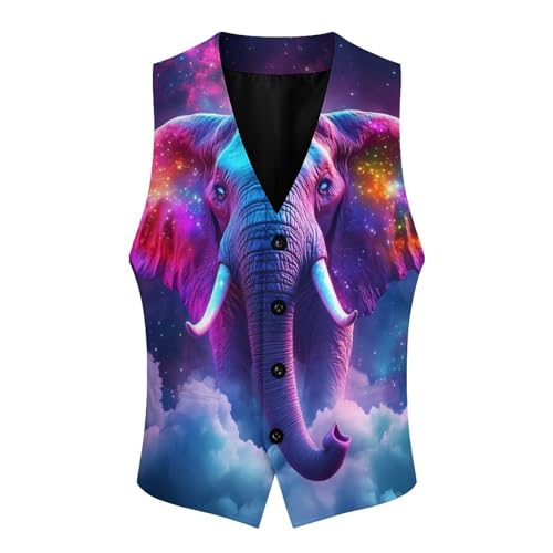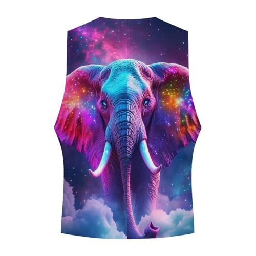 Elephant Colorful Galaxy Suit Vest for Men Waistcoat Dressy V Neck Button Down Sleeveless Business Jacket Coat