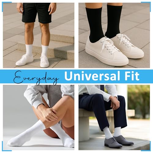 • 🧍🧍 𝗘𝘃𝗲𝗿𝘆𝗱𝗮𝘆 𝗨𝗻𝗶𝘃𝗲𝗿𝘀𝗮𝗹 𝗙𝗶𝘁: Our socks are made to suit every lifestyle. Whether you're at home, work, or on the move, these womens and mens cotton crew socks offer reliable comfort and stretch. They adapt to your foot's shape, making them the impeccable crew socks for women cotton and men who stay active daily.