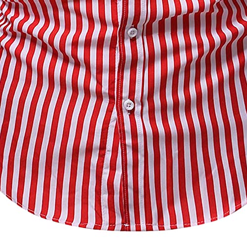 Men's Long Sleeve Spring Stripe Printed Shirt Thin Casual Slim Striped Shirt Fit Pinstriped Button Down Shirts