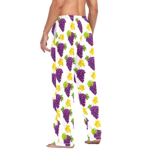 sizzling ! Men's Purple Grape Pattern Pajama Pants with Pockets - Straight Fit Cotton Sleep Bottoms for Lounge & Nightwear#124