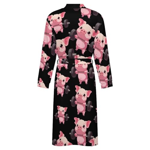 More information about Piggy Weight Lifting gentle Robe Long Sleeve Bathrobes V Neck Sleepwear Spa Robes with Belt Men Woman
