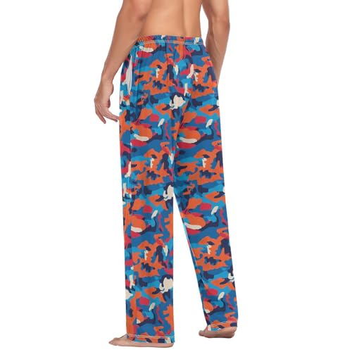 Men's Pajama Pants,Blue Camouflage Orange Lounge Lightweight Sleep Bottoms Pants with Pockets Size S-XXL