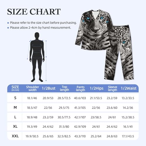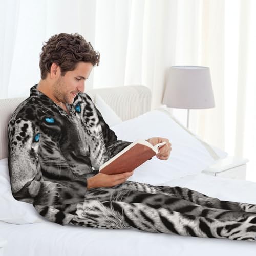 sizzling ! Leopard With Blue Eyes Mens Pajamas Set Button Down Sleepwear Set Long Sleeve Loungewear With Pockets