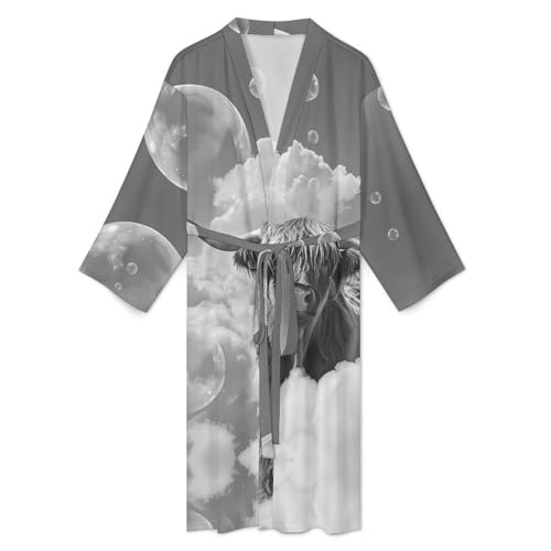 Highland Cow Bubbles Black White Funny Men's Robe Novelty velvety Lightweight Bathrobe Long-sleeve Spa Robes
