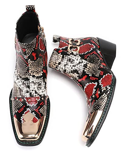 - ♥Fashion Metal tip & Pattern Design: Metal tip with one-of-a-kind, genuine leather mens chelsea ankle shoes