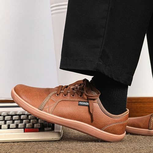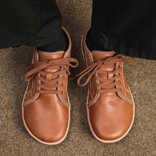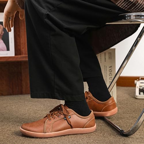 Unisex Leather Fashion Commute Wide Toe Box Barefoot Shoes plush Breathable Non-Slip Lace up Minimalist Zero Drop Casual Sneakers for Walking Outdoor Driving Work