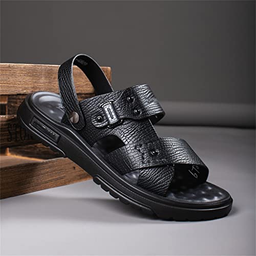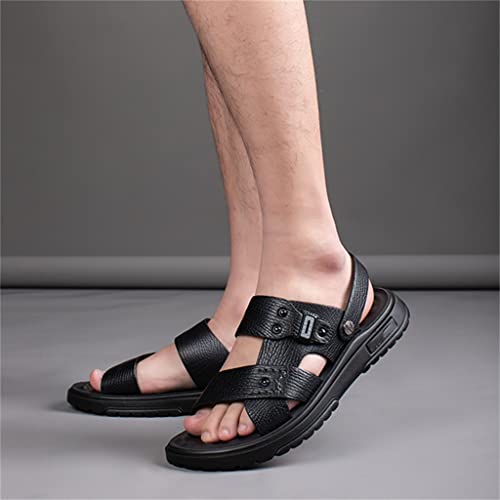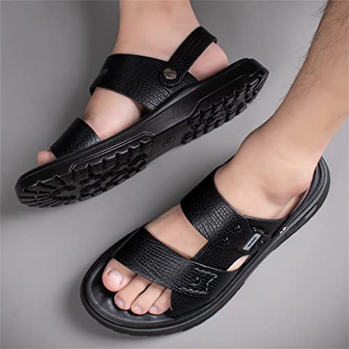 sizzling ! Men Shoes Vintage Real Leather Non-Slip Beach Slip-On Sandals Travel Slippers Black Brown(43)